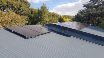 8 of 365W Solar panels mounted to corrugated steel roofing,